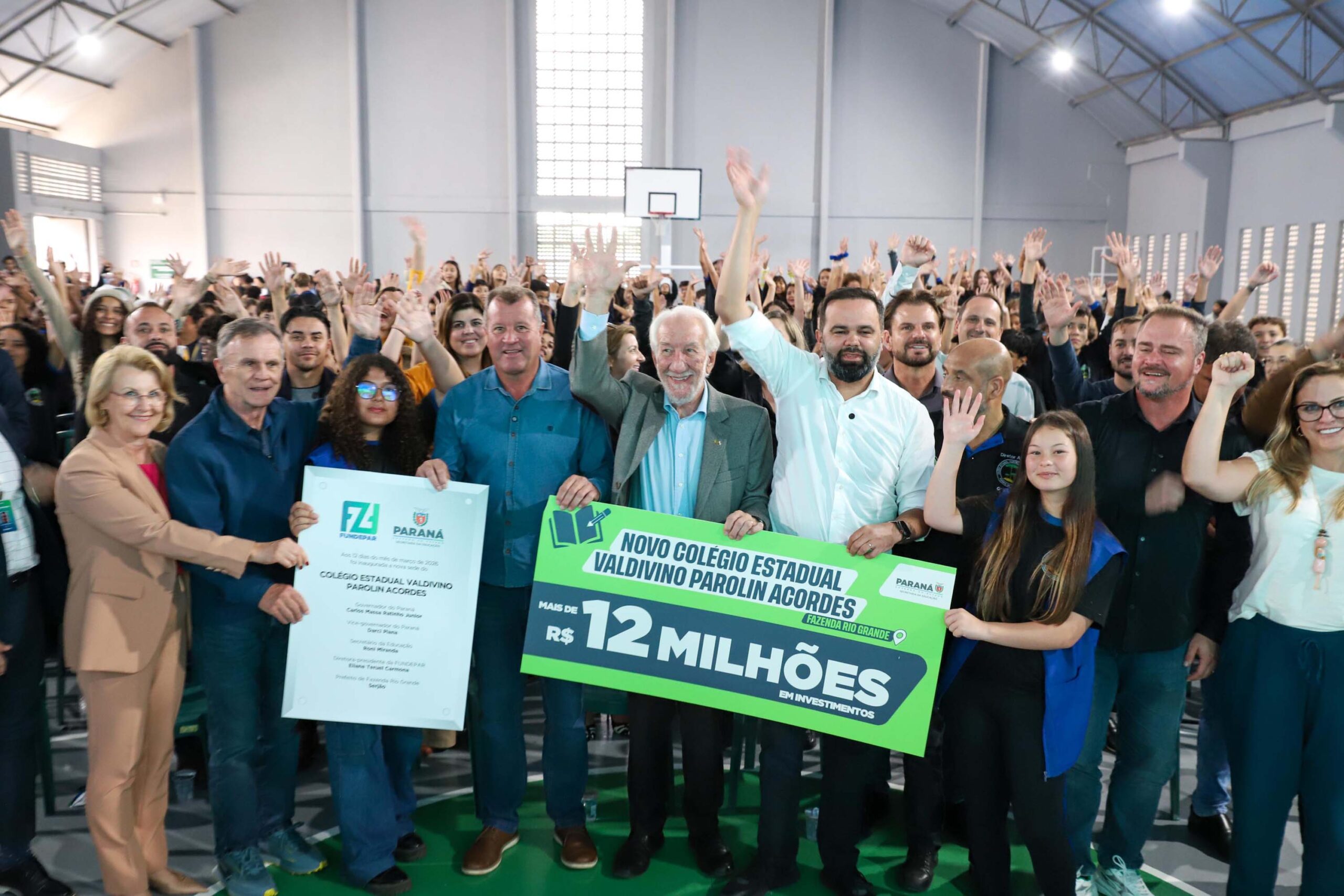 Em Fazenda Rio Grande, a nova unidade do Colégio Estadual Valdivino Parolin Acordes, no bairro Estados, agora atenderá 1600 estudantes em dois turnos e até 2400 em três turnos – antes eram 660 alunos. A obra recebeu R$ 12,8 milhões em investimentos, com 4,1 mil m² divididos em 25 salas de aula, biblioteca, laboratórios, cozinha, refeitório, quadra poliesportiva e área de convivência.