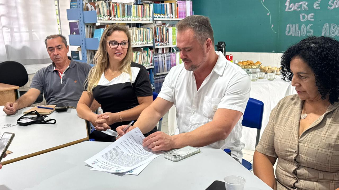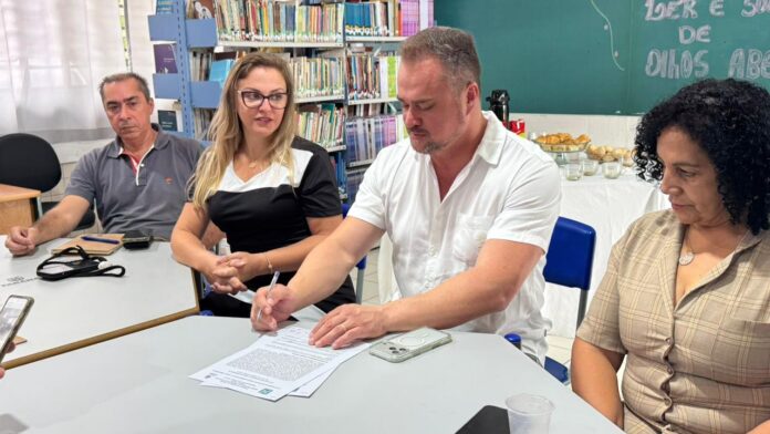 O deputado estadual Alisson Wandscheer participou, nesta quarta-feira 18, da reunião e assinatura da ordem de serviço que marca o início das obras de reforma no Colégio Estadual Lucy Requião de Melo e Silva, em Fazenda Rio Grande. Estavam presentes, o diretor Paulo Sura e sua equipe, a chefe do Núcleo Regional de Educação Área Metropolitana Sul, Eliandra Jaskiw, representantes dos pais e da empresa responsável pela obra.