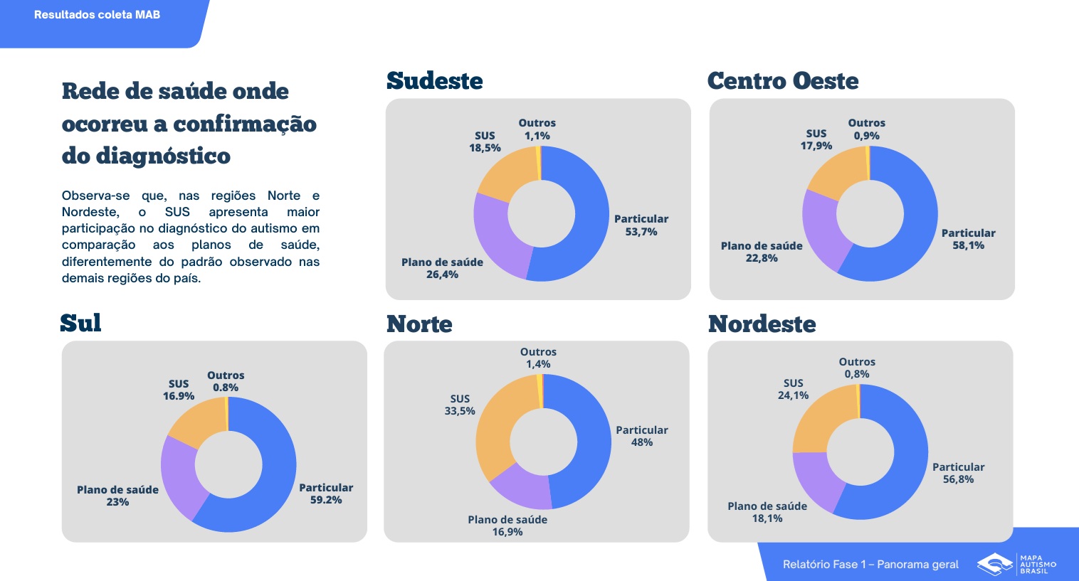Os dados mostram que 55,2% dos diagnósticos foram feitos na rede particular de saúde, 23% por plano de saúde e apenas 20,4% pelo SUS, sendo que as proporções variam quando consideradas as diferentes regiões do país – a pesquisa indica dependência maior do SUS para diagnóstico no Norte e no Nordeste.